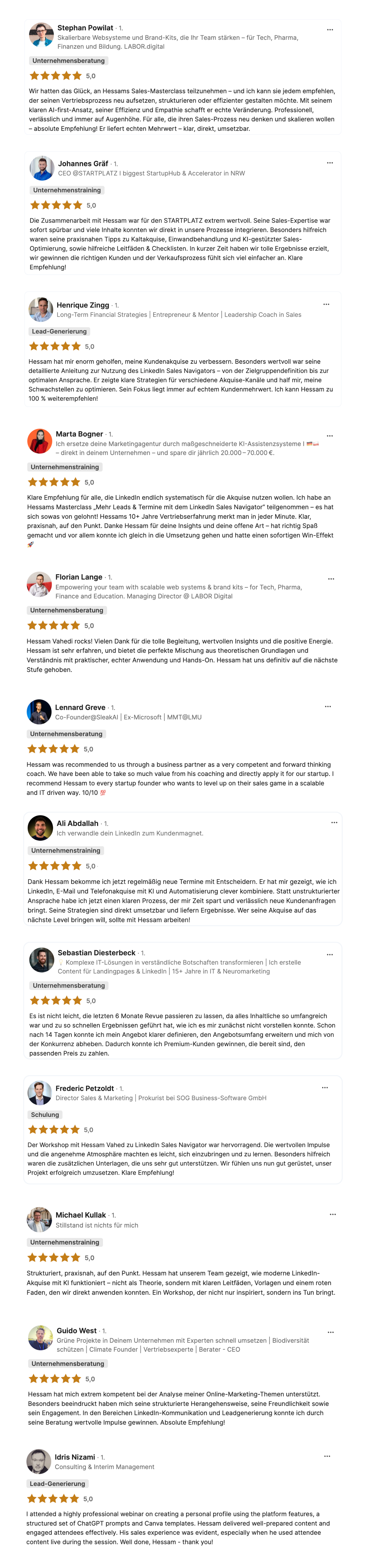 Kunden wie mv it GmbH, Pioneers Partners oder LABOR.digital nutzen dieses System bereits – und gewinnen regelmäßig neue Kunden, ohne zusätzliche Vertriebler einzustellen.